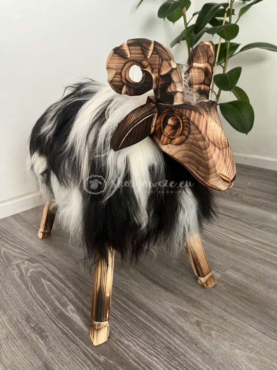 Krzesło - baran dekoracyjny / biało czarny / opalany