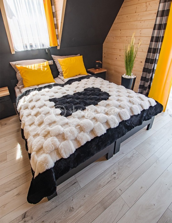 • Narzuta z owczej skóry / biało czarna / szachownica